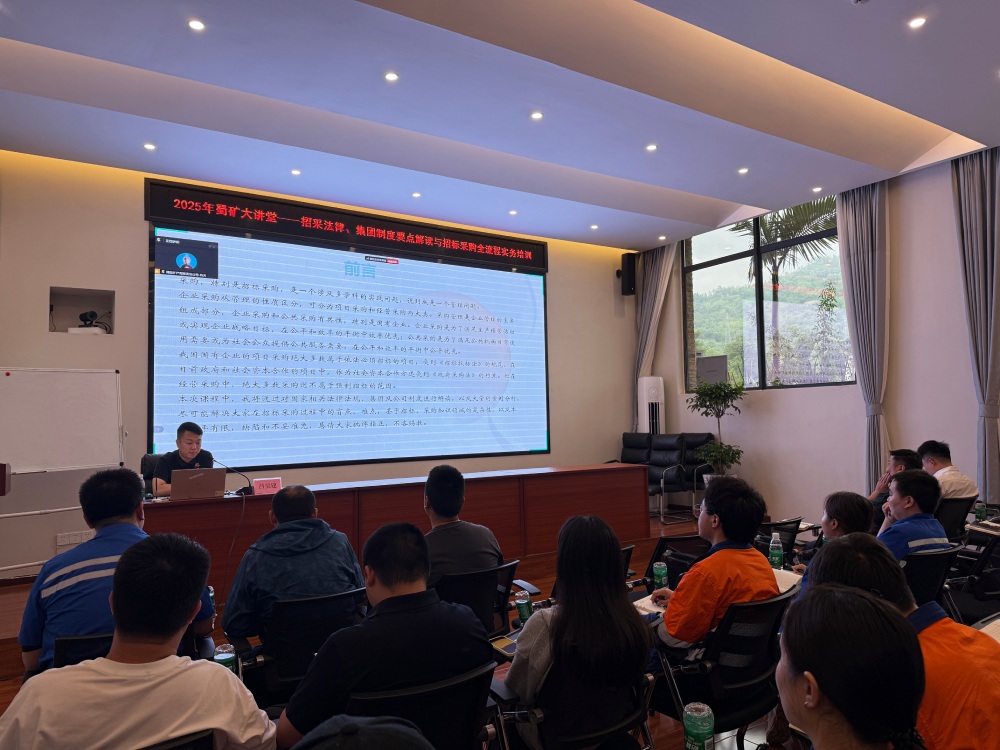 ? ? ? ?6月24日,公司組織開展“蜀礦大講堂——招標(biāo)采購(gòu)法律、集團(tuán)制度要點(diǎn)解讀與招標(biāo)采購(gòu)全流程實(shí)務(wù)培訓(xùn)”。本次培訓(xùn)由公司生產(chǎn)經(jīng)營(yíng)部工程與合同管理崗呂昊建授課。
