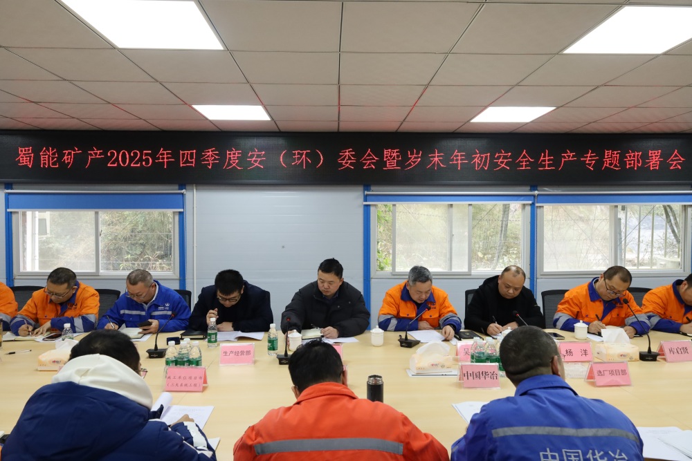 ? ? ? ?12月24日下午,蜀能礦產(chǎn)公司召開(kāi)2025年四季度安(環(huán))委會(huì)暨歲末年初安全生產(chǎn)專題部署會(huì),公司黨支部副書(shū)記、總經(jīng)理吳太茂主持會(huì)議并講話。