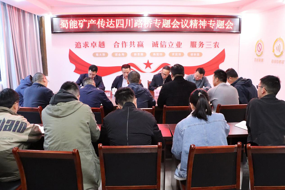 ? ? ? 3月29日,蜀能礦產(chǎn)召開專題會學習傳達四川路橋就清潔能源集團、新材料集團和其相關(guān)公司股權(quán)轉(zhuǎn)讓事宜及過渡期生產(chǎn)經(jīng)營安排專題會議精神,研究部署公司貫徹落實意見。會議由公司董事長、總經(jīng)理徐開貴主持,副總經(jīng)理韓方建,財務總監(jiān)熊永奎,副總經(jīng)理楊安臣及各部門負責人出席會議,公司全體員工參加會議。