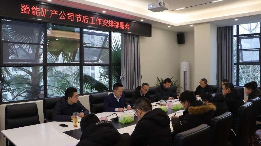 ? ? ? ?1月28日,蜀能礦產(chǎn)公司召開(kāi)節(jié)后工作部署會(huì),會(huì)議通報(bào)新材料集團(tuán)2023年各直屬企業(yè)任務(wù)目標(biāo)討論會(huì)情況及春節(jié)值班值守情況。會(huì)議聽(tīng)取各部門(mén)2023年度工作計(jì)劃、存在的問(wèn)題及對(duì)公司改革發(fā)展的意見(jiàn)建議。會(huì)議安排部署公司節(jié)后工作和年度有關(guān)工作。