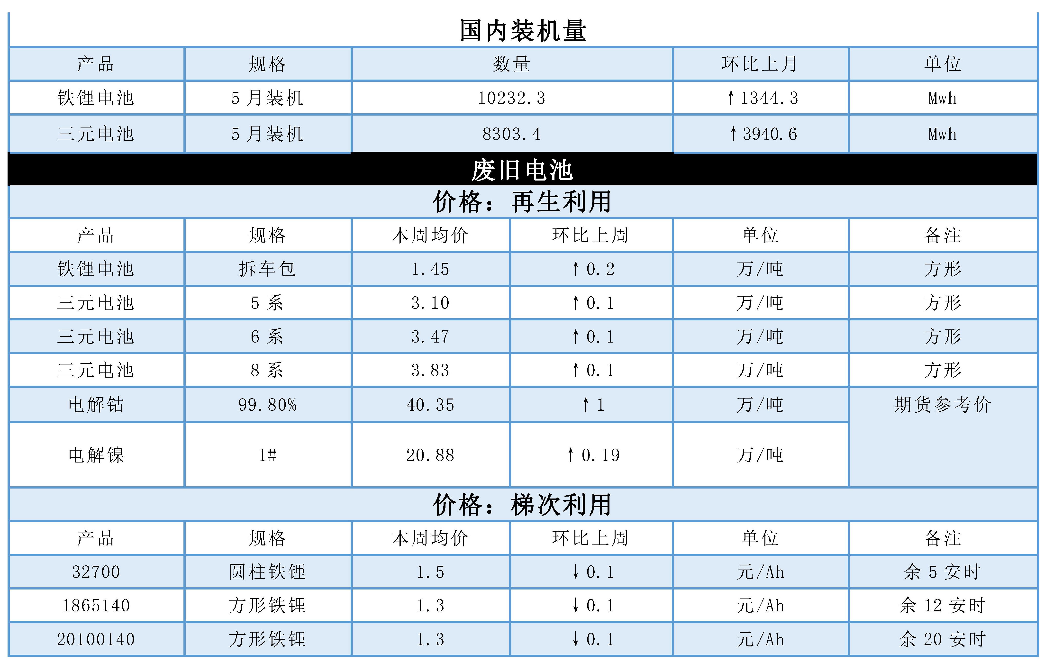 本周電池原料價(jià)格互有小幅的漲跌,綜合成本變化不大。?